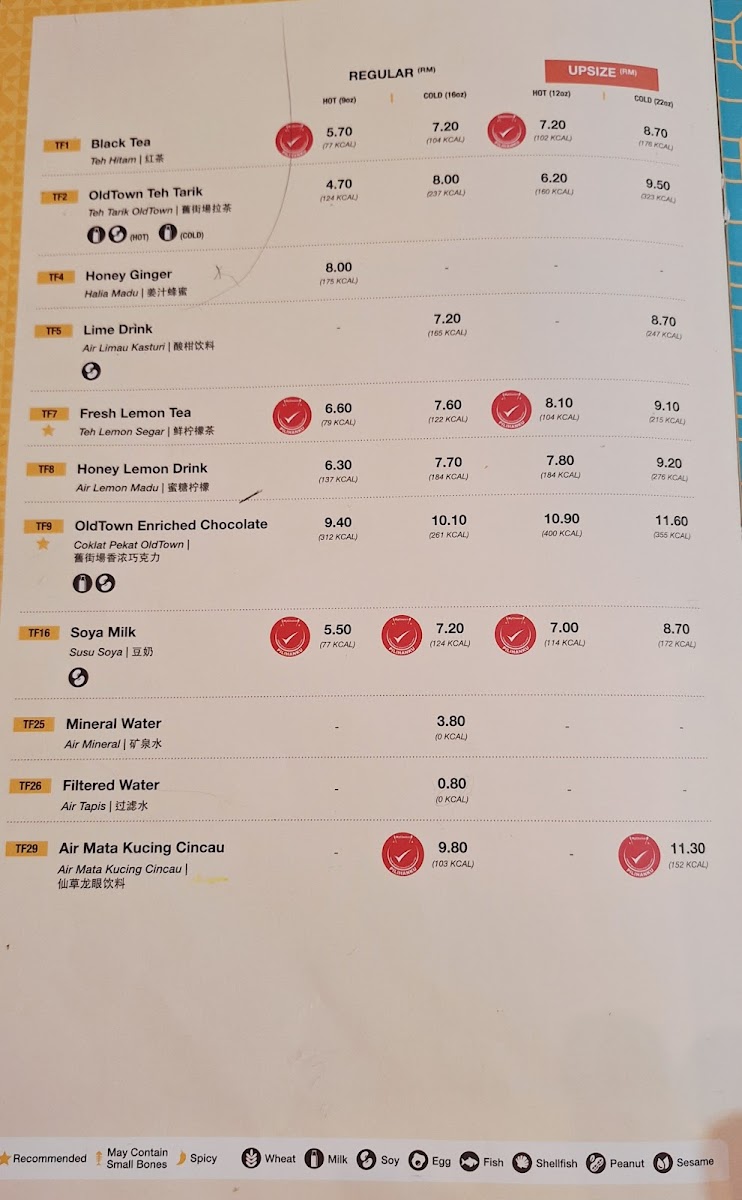 OLDTOWN White Coffee @ Nu Sentral Menu